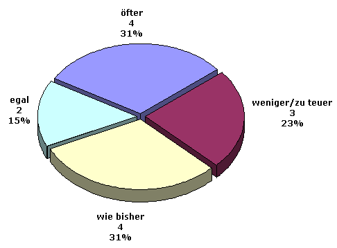 | Kommentare: "Öfter, es besteht ja bekanntlich kein Teilnahmezwang." (Marco Senftleben) "Wer nicht will muss ja nicht mitfahren!" (Eduard Mengel) "Man sollte vielleicht die Teilnahmepunkte für Tests abschaffen (dass der verpflichtende Charakter wegfällt)" (Volker Busche) "Ich möchte nicht ganz auf Testfahrten verzichten, aber 6-7 Testtermine im Jahr werden mir einfach zu teuer! Lieber das ein oder andere Rennen mehr..." (Michael Gärtner) |
